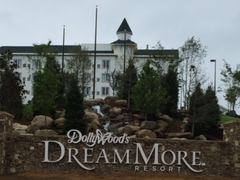 DreamMore Resort opening is finally here! The resort opens Monday July 27, 2015. The resort offers “300 rooms and hotel suites designed with families and groups in mind”. DreamMore Resort is the latest addition to the Dollywood experience. This past week workers were working feverishly to get the final touches completed before the new resort opens on Monday July 27, 2015. Workers were all over the grounds planting trees and shrubs, road crews were getting the entrance road to the resort ready, and Dollywood theme park workers had been practice “guest” for the last few weeks making sure the resort was ready for the grand opening on Monday! The massive 300 plus room resort is beautiful sitting high on a hill on Veterans Boulevard adjacent to the entrance to Dollywood in Pigeon Forge, TN.
